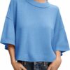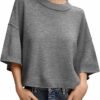 - Feature: Oversized sweater top is designed with half short sleeve, baggy loose fit, classic solid color, ribbed knit and rolled hem, slightly cropped length, drop shoulder and crew neck.