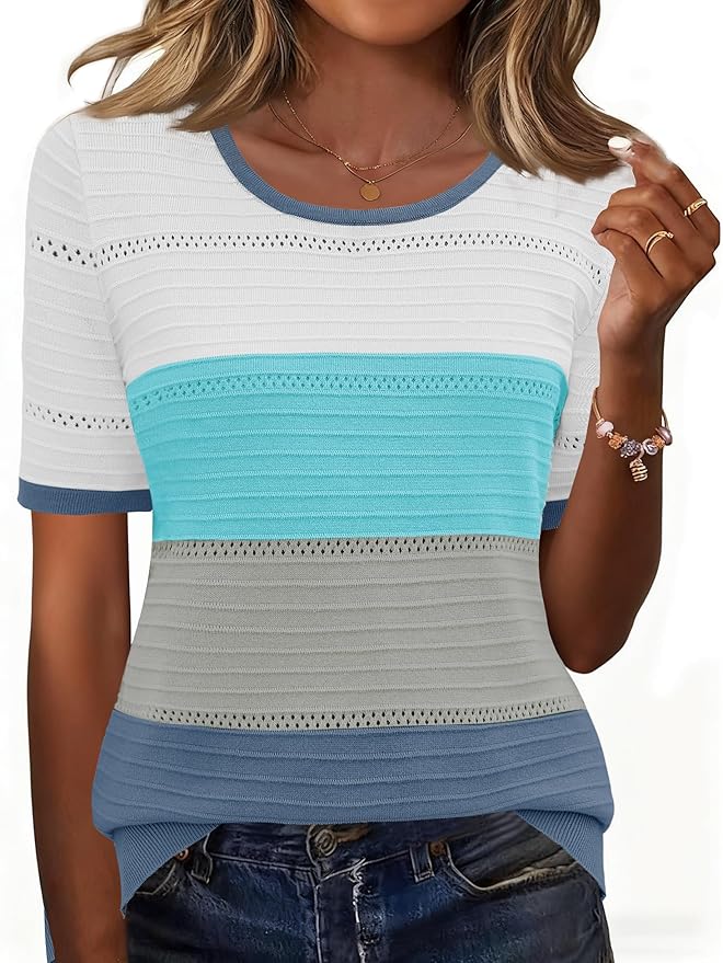 - Material: Crafted from a premium blend of 80% Viscose and 20% Nylon, this short sleeve crochet sweater offers a soft, breathable, and lightweight feel, making it perfect for casual wear throughout the day. The fabric blend provides both durability and a smooth, silky texture that feels gentle against the skin.