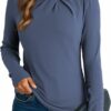 - Constructed with soft, high-quality fabric, this blouse delivers exceptional warmth and coziness. The twist knot at the neckline creates an eye-catching focal point, while the mock neck design provides additional coverage and elegance. Enjoy superior flexibility thanks to the stretchy fabric, making this one of the comfiest and cutest long sleeve shirts for women.